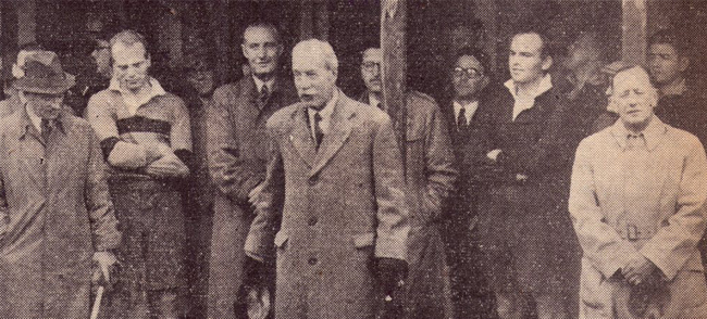 A.S Pollock (President Ulster Branch), W.D McKee (N.I.F.C Captain), Frank Caldbeck,C.S Neill, F Jones, R Gilliland, C.V Smylie (President), M Gibson